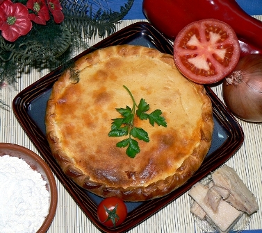 Relleno: En una sarten se dora ligeramente el ajo finamente picado y se cuece la cebolla picada sin que llegue a dorarse. Se le añade el tomate (o la salsa de tomate) y las tiras de pimiento. Se sazona con sal y pimienta.